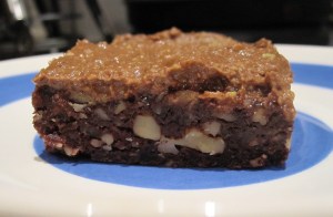 Pantry and fridge check revealed I could accomplish a delish raw brownie slice… so I replaced my perfectionist idealistic notions and just created my first of 365 raw food dishes!