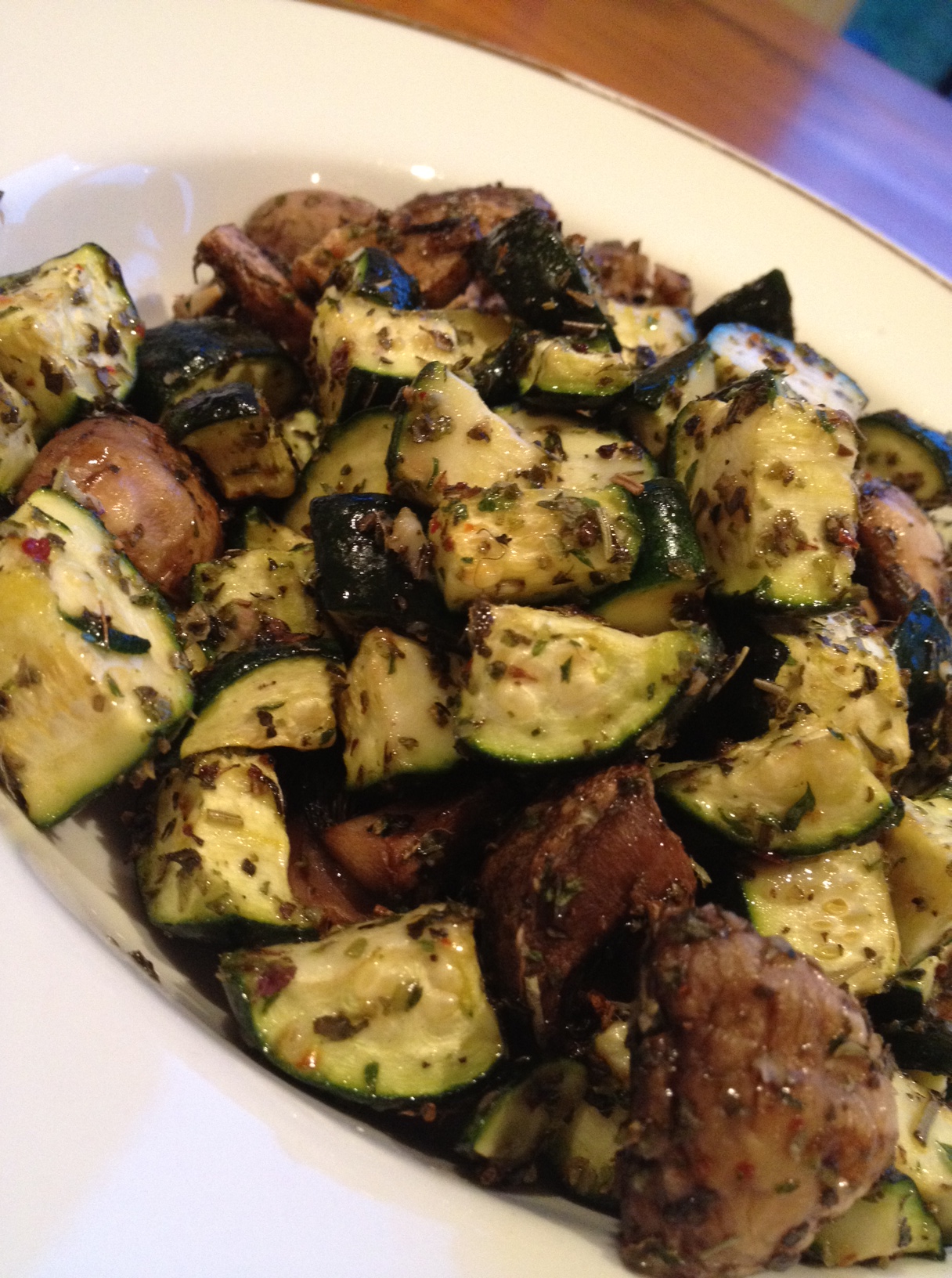 So I went home empty handed and late… I found 2 zucchini’s and a bag of mushrooms in the fridge. So after some reviewing of various raw food cook books lying around the kitchen I found a recipe. Italian Vegetables tonight as my raw food! I’ve done a few variations of this in the past and it works any which way you do it. You can vary vegetables and marinade.