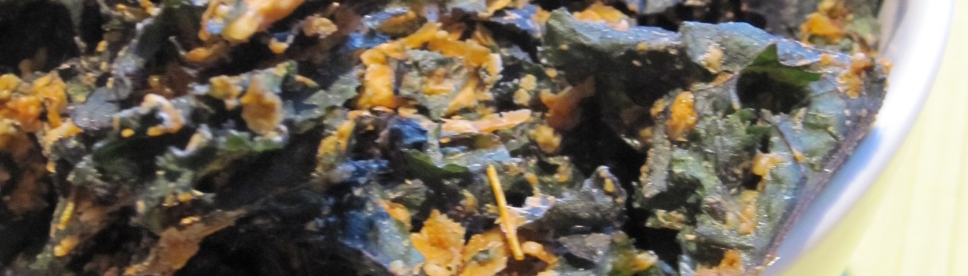 I did a little ‘googling’ and here is my version of the Kale Chips – not quite Cashew, Carrot and Coriander – but the ‘un-dehydrated’ version tastes yum – can’t wait for them to finish in the dehydrator!