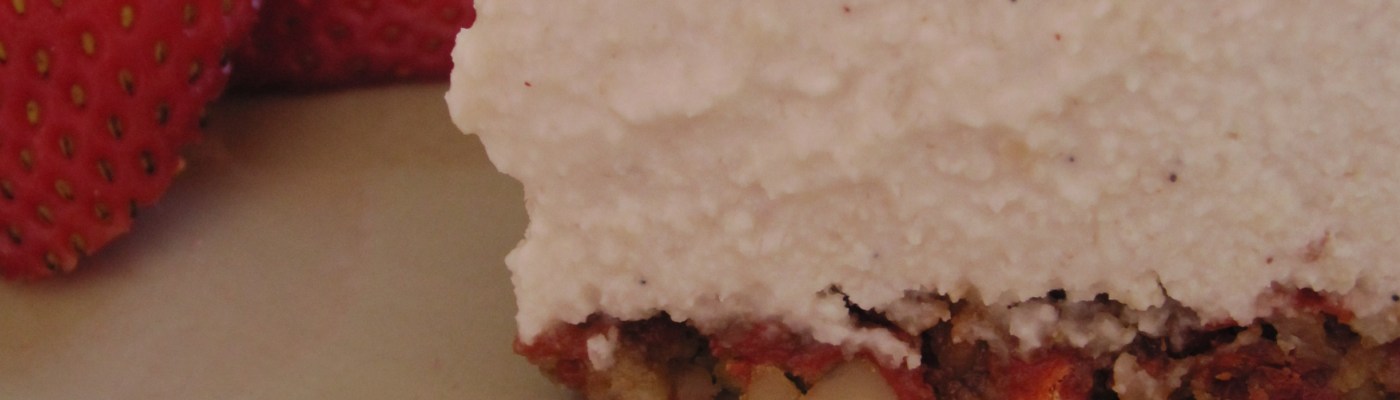 I am extremely excited about this recipe. From the very moment that Alissa’s cookbook (Raw Food for Everyone) arrived in the mail I have wanted to make this recipe. There are not many photos in Alissa’s cookbook – but there is a picture of this cheesecake and it just looks divine!