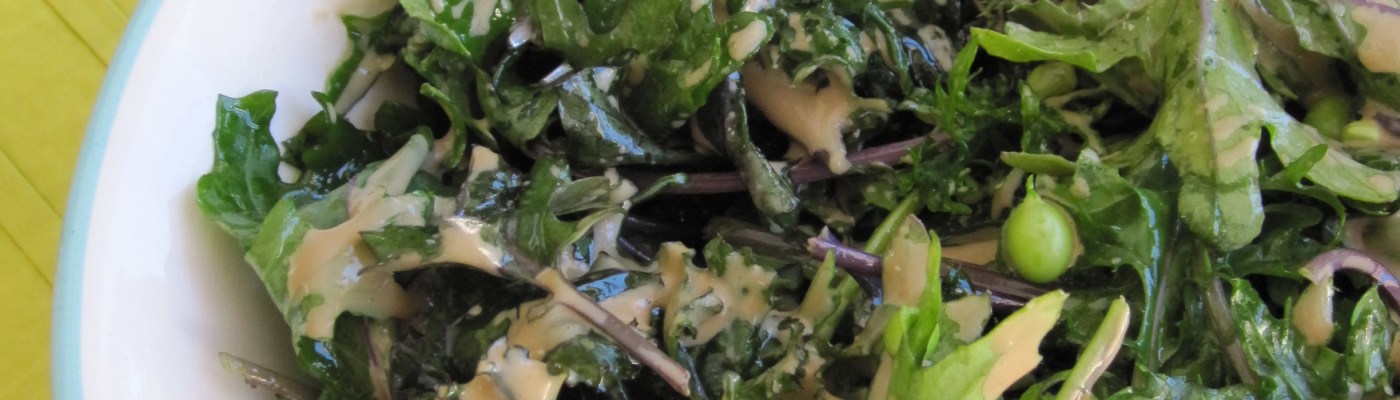 Hunting around in the fridge – I had some sugar peas, a bag of baby Kale and some Tahini dressing.