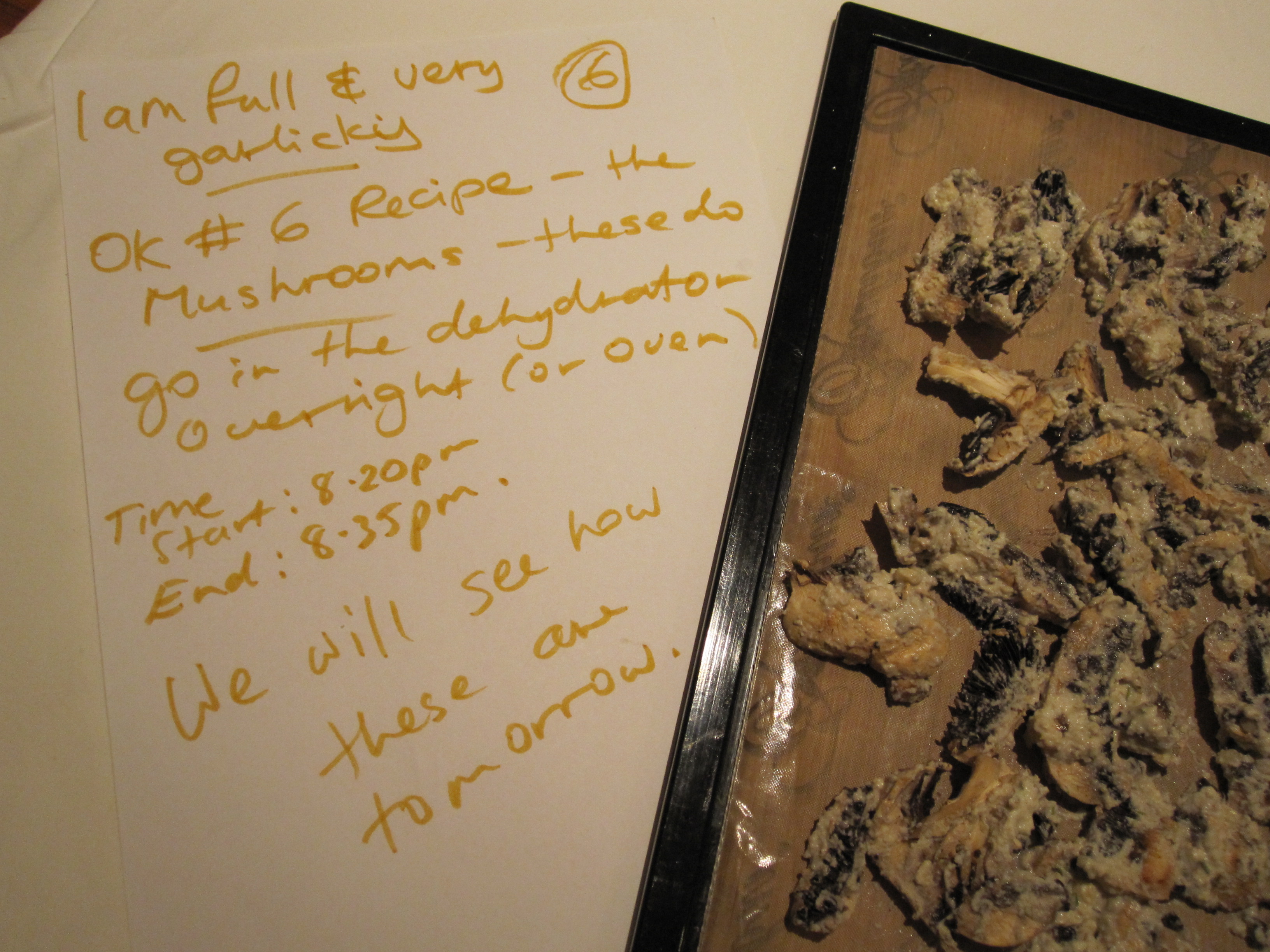 Place on a lined dehydrator tray and dehydrate overnight (no more than 118 degrees Fahrenheit)