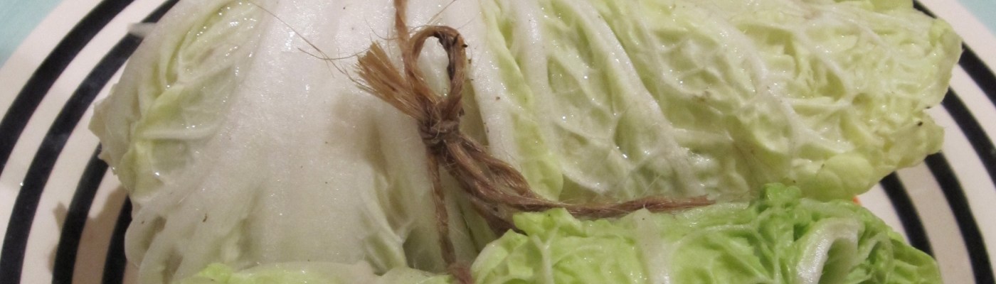 Place sprouts, snow peas, cucumber and mushrooms onto a large cabbage leaf.