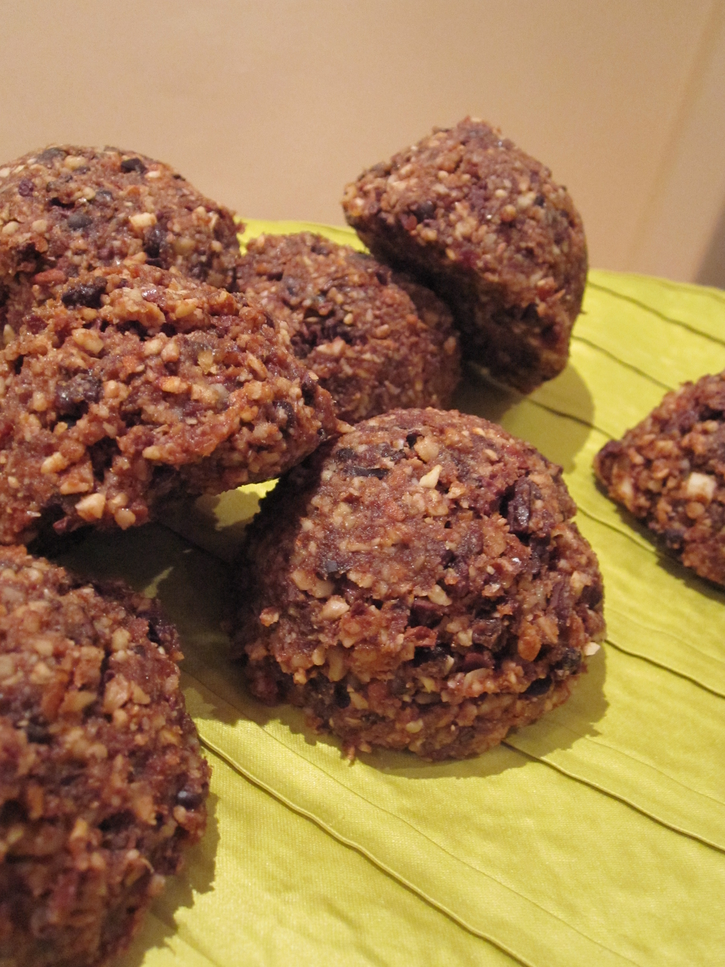 Process the nuts in a food processor until they form a crumbly texture. Add the dates an process until combined.
