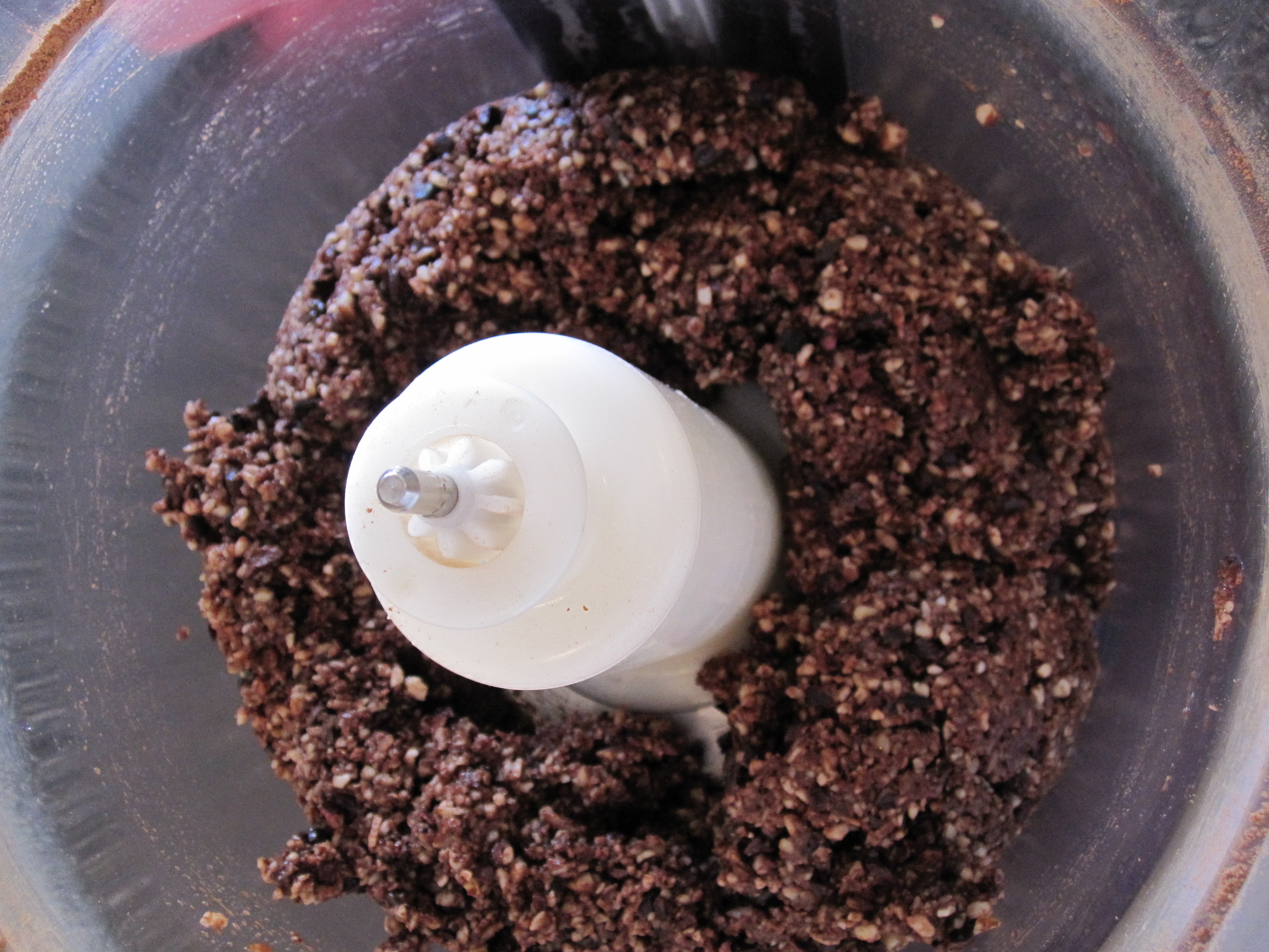 Process the brazil nuts, shredded coconut, salt, cacao powder and vanilla paste in a food processor until fine crumbs appear. Add the agave and cacao nibs until the mixture just starts to stick together.