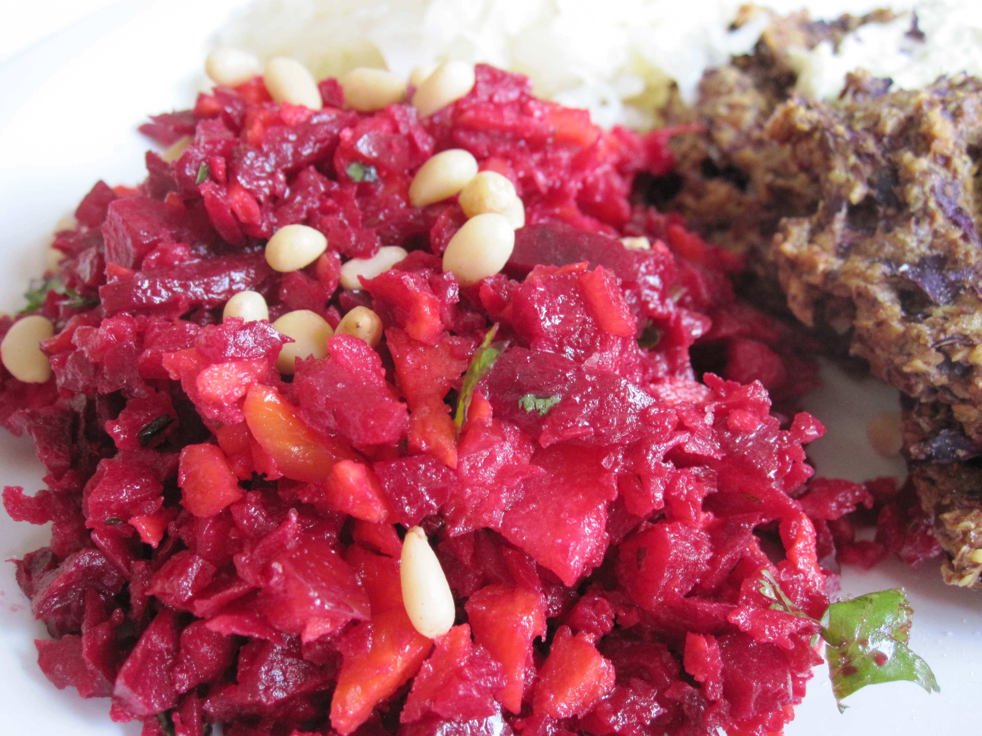 This is a great salad to have on hand in the fridge to add to your lunch or dinner plate.Simple to make, easy ingredients… you can add goat’s cheese or feta on top (not raw of course) or some pistachios, pine nuts or sunflower seeds.