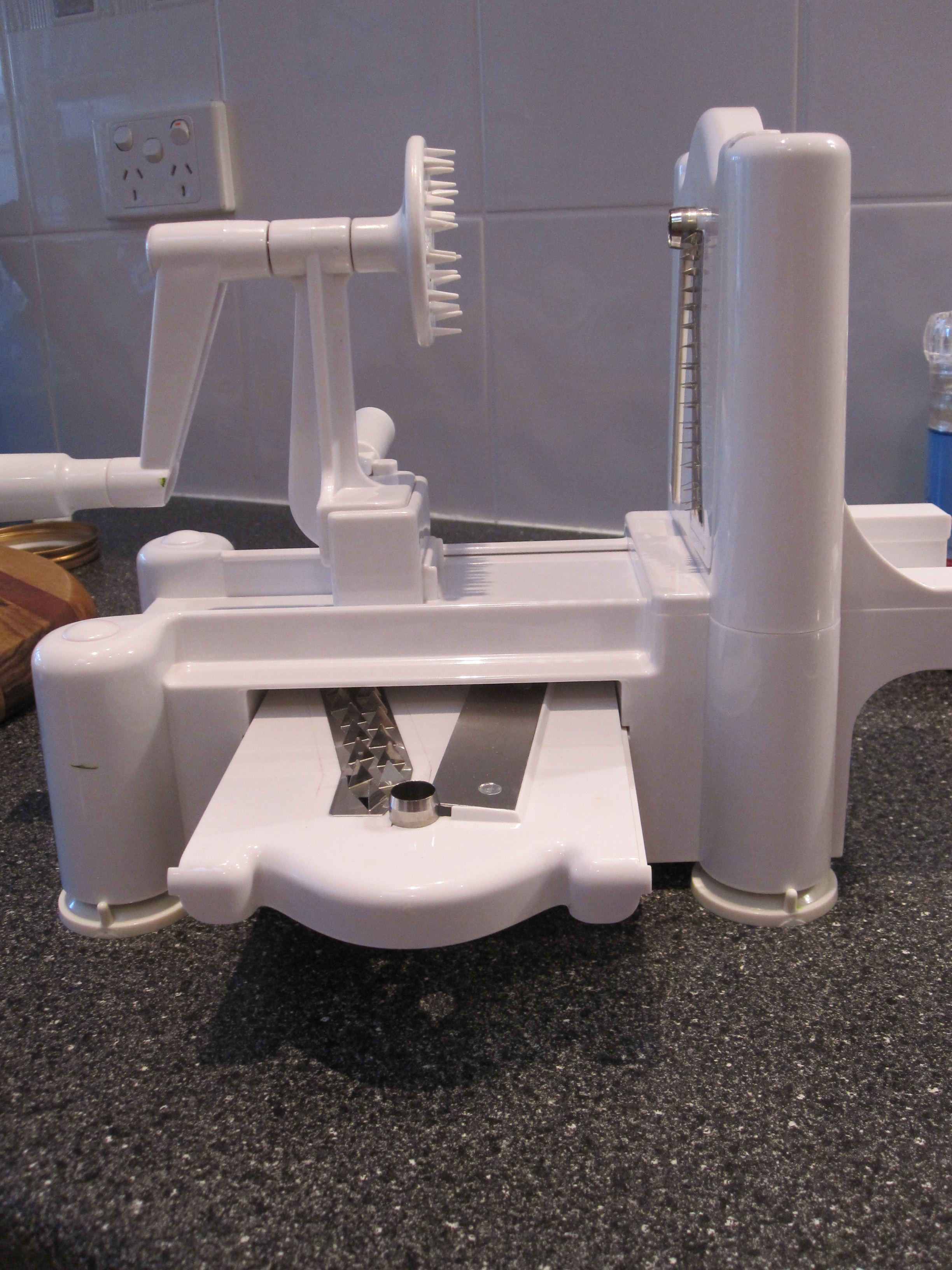 I’ve added a photo of the spiraliser to this recipe blog – it is a bit hard to explain what it is so I thought a photo would work better. You can pick them up from kitchen shops for around $29 – $39. It is able to cut and spiral in a number of different ways – I mostly use the thin noodle spiraliser.