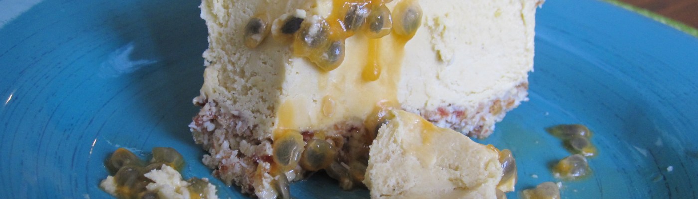 Press base firmly into a round spring-form cake tin.  Sprinkling a little extra coconut on the base helps the cheesecake from sticking.