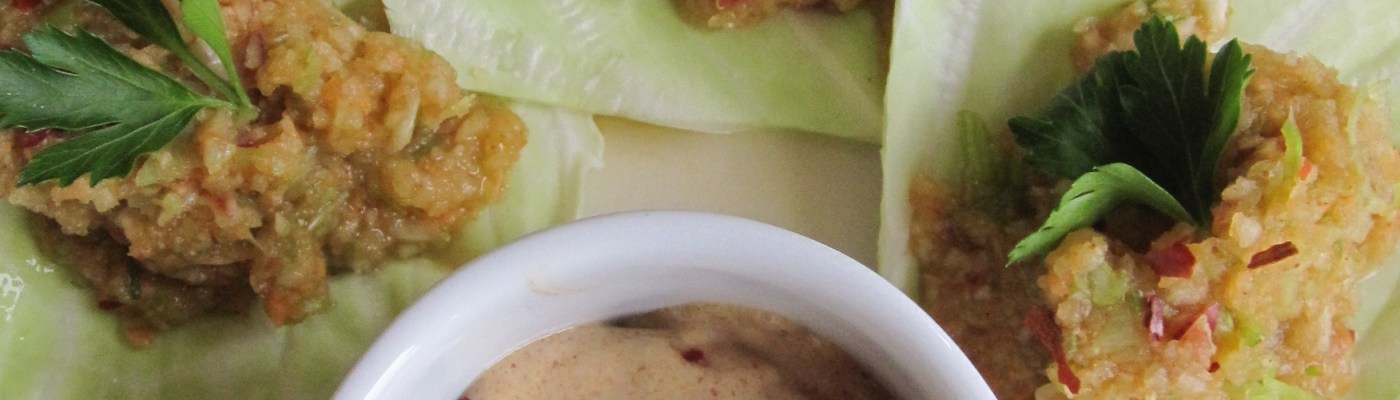 Place spoonfuls out onto the cabbage leaves and enjoy with some Almond Satay. Or just pick them up and eat them on their own.