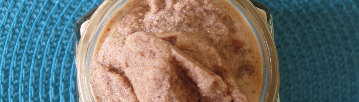 This is almost like a chilli chocolate sorbet – the more ice you add the more sorbet like… Add more milk for a creamier texture or add a handful of cashews….