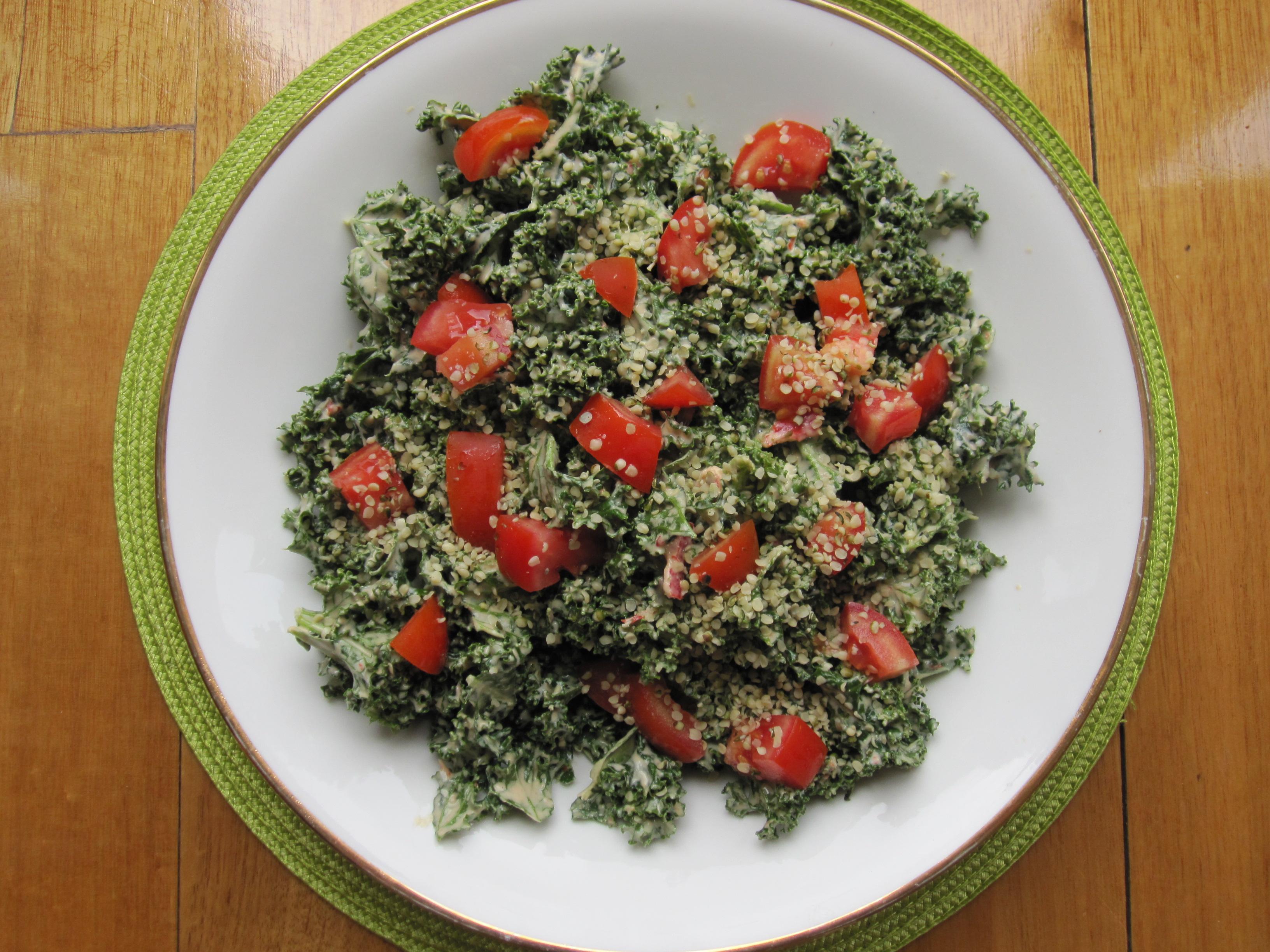 It is time for a huge bowl of Kale and what better way to eat it than massaged with this yummy tahini dressing!