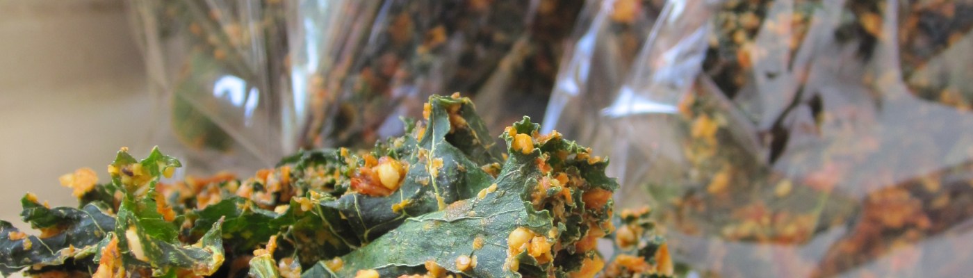 On a dehydrator tray place the kale chippies and dehydrate overnight until lovely and crispy crunchy…