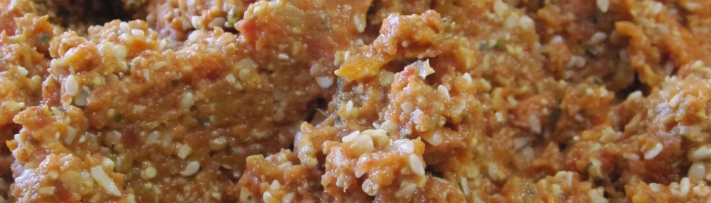 This recipe has two parts: the tomato sauce and the meat which is a seed mix. Some of the seeds need soaking – so put them on to soak before you start.