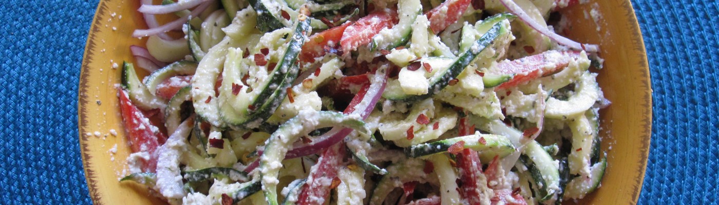 Quick and Easy Pastas are always a good raw staple… I like this one as it combines Zucchini, Capsicum and Red Onion in the fettuccine – works well…