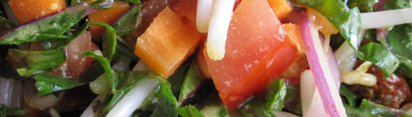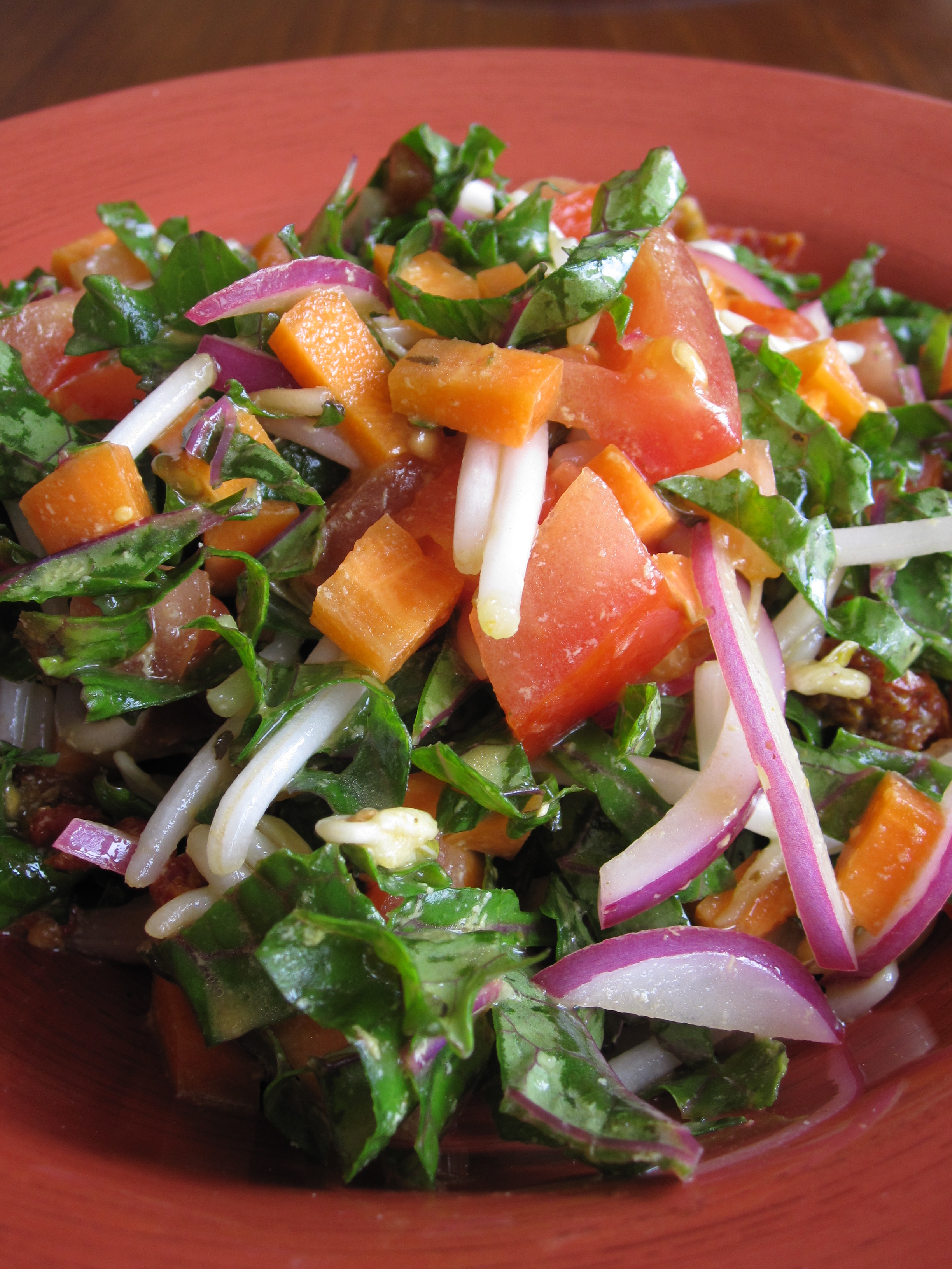 Place all ingredients together in a large bowl, massage dressing through with hands and serve!