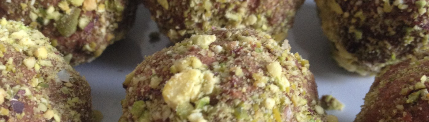 Remove from the cooler, roll into balls and coat with pistachios.